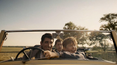 Songs are used sparingly but with purpose. A Jeff Tweedy track, “Love Is the King,” first appears over contemporary images of Abby and Herbert in the woods, then carries over into Herbert’s return to Prague, linking their experiences across decades. Such choices help the film maintain its dual “present to present” structure. The past is not a sepia-toned dream, but something Herbert is reliving in the now each time he speaks.